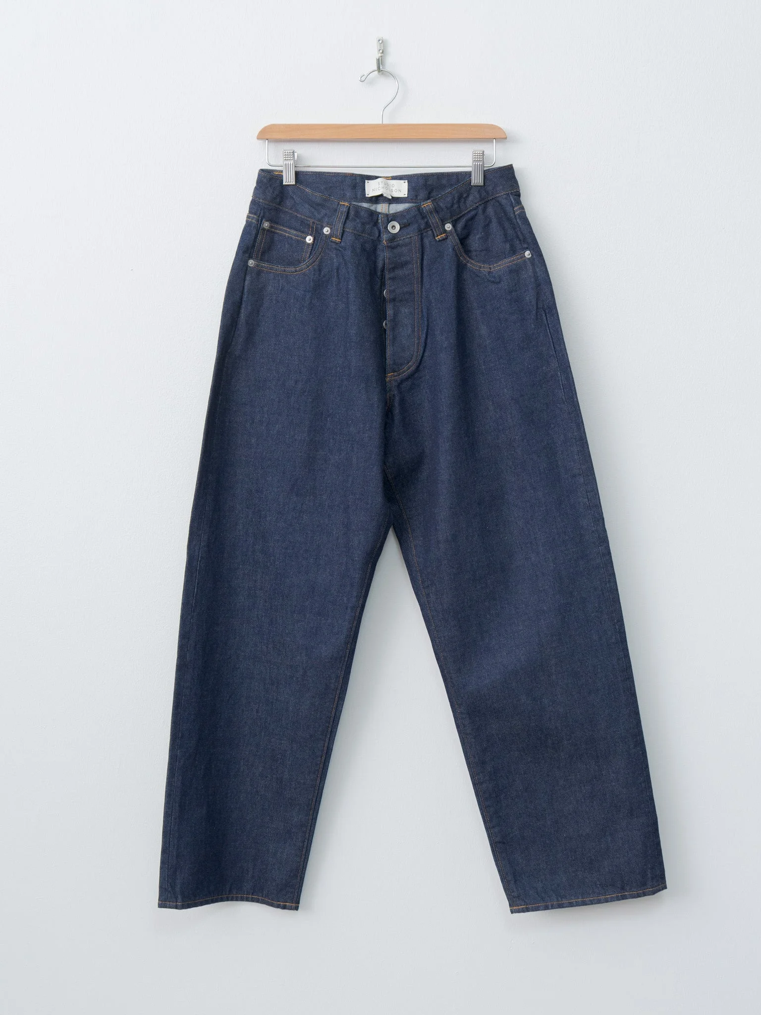 The Seb Jeans feature a slouchy fit with a straight, wide leg and a slightly dropped crotch. Crafted from 13oz Japanese denim washed for a soft hand feel, they include classic five-pocket construction, a button fly, rear leather patch, and topstitched edges throughout. - Made in Japan - 100% Cotton - Available in Indigo Wash - The model is 5'7"/170cm and wears size XS - Unisex sizing - we recommend sizing down