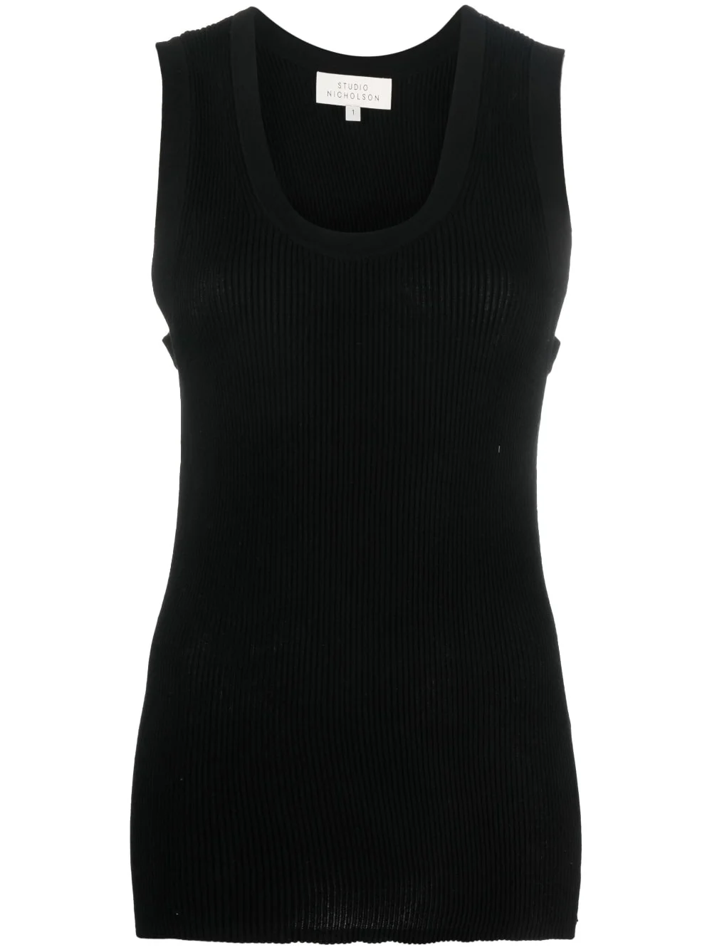 sleeveless knitted top Highlights - Black - Cotton - Ribbed knit - Scoop neck - Sleeveless - Straight hem Imported Composition Cotton 100% SIZE & FIT Model measurements Height 5 ft 10 in(1.77 m) Bust/Chest 32.28 in(82 cm) Hips 35.03 in(89 cm) Waist 25.19 in(64 cm) Washing instructions Machine Wash