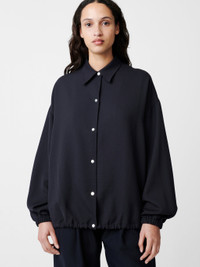 Sprung takes its inspiration from sporty coach jackets, with a drawstring hem that can be cinched in to create a blouson effect. Its simple design is elevated by the use of a highly textured viscose-linen blend and loose, boxy fit. DETAILS - Popper fastening - Elasticated cuffs - Boxy fit - Slubby viscose-linen - Wear it with the matching Chalco Wool PantJen is 5'10 / 177 cms and wears UK8 CARE 55% Polyester 45% Virgin Wool Dry Clean Only Made in Portugal