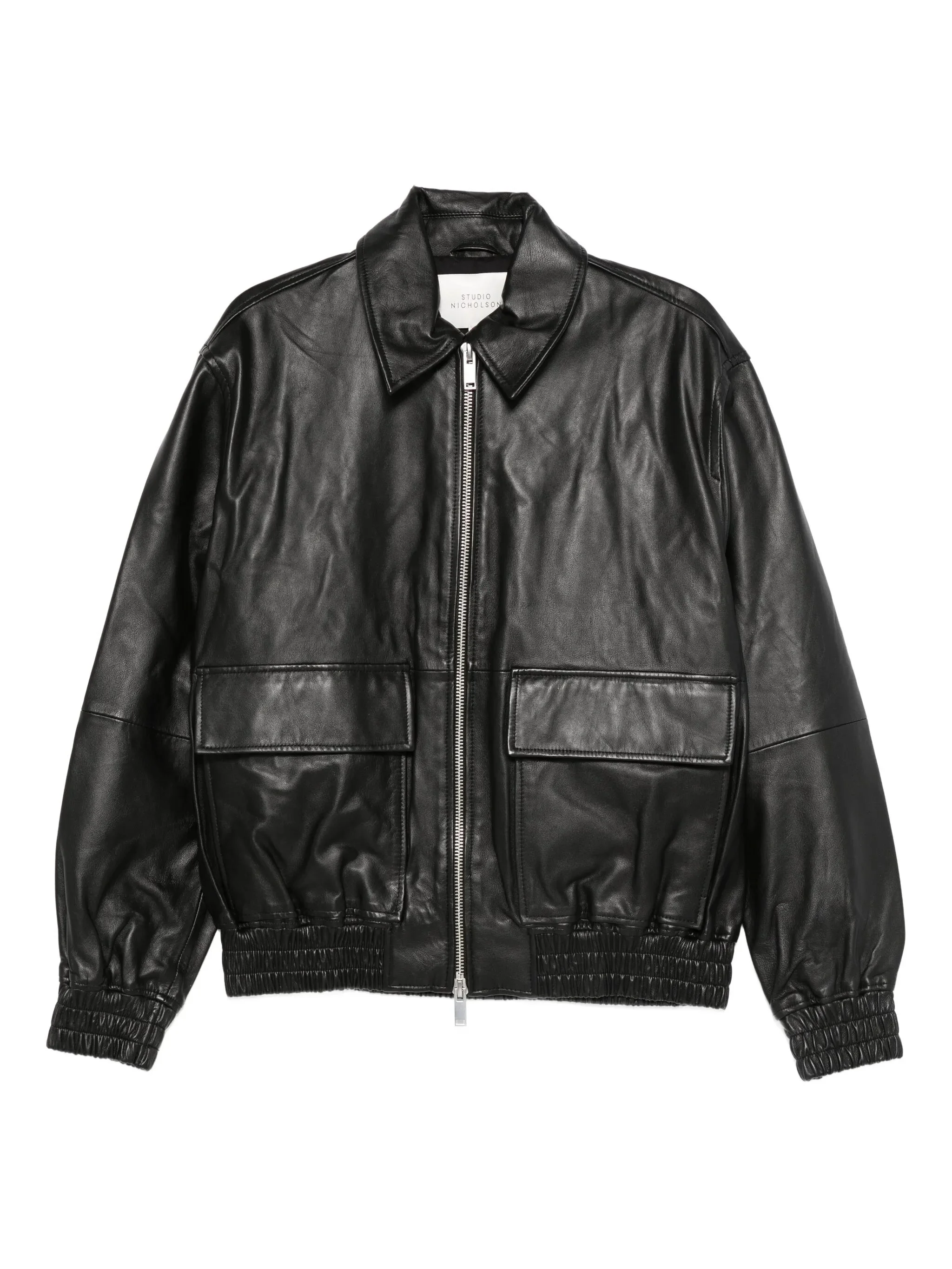black two-way zip fastening point collar two front flap pockets elasticated hem long sleeves - chest: 134.0 centimetres, sleeve length: 66.0 centimetres, length: 70.0 centimetres, shoulder width: 54.0 centimetres - Color: BLACK - Made in: Bangladesh - Designer Style ID: SNM-1115 PISTON BLACK Composition and care Leather: 100.0%