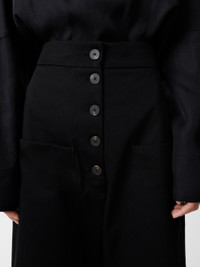 Fast becoming a Studio Nicholson classic, the Taupo silhouette is a distinctive one, with a drop crotch and curved leg. This carefully designed shape is maintained thanks to a softly luxurious cotton fabric. DETAILS - Visible button fly - Shaped pockets - Cropped, wide leg shape Chen is 5'10"/ 178 cms and wears a UK8 CARE 100% Cotton Wash at 30°C | Cool Iron Made in Portugal
