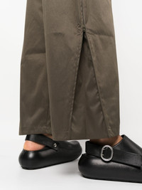 Tobas wide-leg trousers Highlights - Moss green - Elasticated waistband - Low-rise - Wide leg - Ankle zips Imported Composition Polyester 56%, Polyamide 44% SIZE & FIT Model measurements Height 5 ft 9 in(1.76 m) Bust/Chest 31.88 in(81 cm) Hips 35.43 in(90 cm) Waist 24.8 in(63 cm) FittingInformation Designed with a wide-leg cut, these trousers allow for a close fit at the waist and offer a loose and roomy fit over the leg The zipped hems allow you to adjust the fit throughout the calves and ankles Made from a midweight non-stretch fabric This piece fits true to size – take your usual size