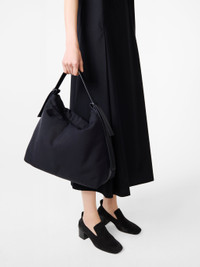 Studio Nicholson’s relaxed elegance is evident in this versatile Transit Bag. It’s crafted from our astro nylon – a hard-wearing fabric noted for its durability and soft-to-the-touch finish – and constructed with a leather handle that runs along the edges and base. Transit Bag opens to reveal a spacious interior that’s completed with slip pockets and a zip pocket. DETAILS - Two-way zip top - Internal slip pockets - Internal zip pocket - Leather handles, trims and zip pulls