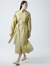 Maxi belted shirt dress made from a light cotton poplin. DETAILS Maxi belted shirt dress made from a light cotton poplin. Details:- Stand collar- Dropped shoulder with epaulette detail- Two side seam pockets- Detachable belt - Pleated sleeves with buttoned cuffs - Curved hem with deep side splits Bing Bing is 5’9.5” / 177cm, she wears a size 1 CARE 100% Cotton Wash at 30°C