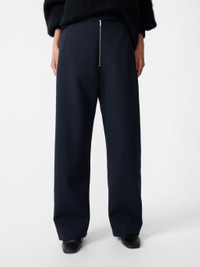 Crafted for easy Autumn Winter dressing, Trouvi is a more tailored version of our Pravin pant. The pants are cut from an Italian-milled grain de poudre: a fabric made from combed wool yarns with a dry, technical hand feel that evokes classic tailoring cloth. Trouvi has an exposed zip fly and a wide leg, capturing the relaxed ethos that permeates our Winter ’25 collection. DETAILS - Concealed button and hook fastening - Exposed zip fly - High waisted - Wide leg - Two rear pockets - Wear it with the matching Araz JacketLuana is 5'10" / 178 cms and wears a size UK8 CARE Main: 88% Wool 12% Polyamide Lining: 51% Viscose 49% Cotton Hand Wash | Delicate Dry Clean Made in Portugal