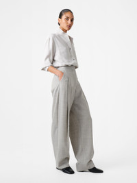 Cut from lightweight tropical wool for a smartly tailored look even in the warmer months, these Vai pants exude classic elegance. They combine a reverse-pleated front with a neatly pressed leg, which is slightly elongated to allow the fabric to pool at the ankle. DETAILS - Side slant pockets - Reverse pleats - Pressed creases - Back welt pocketsMiko is 5'9" / 177cms and wears a size UK8 CARE Main Fabric: 100% Wool Lining: 100% Viscose Dry Clean Only Made in Portugal