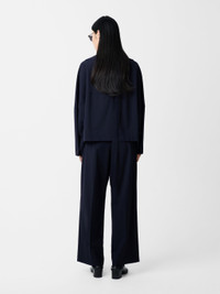 This Velho top is cut from our signature Tropical Wool, a fabric spun with tightly twisted yarns that result in a matte finish and enhanced tensile strength. Flat-felled seams run along the collar, chest and back for added structure and a V-shaped buttoned fastening to the reverse allows the silhouette to hang with a clean drape. DETAILS - Wide boat neck - V-shaped back opening - Loose, flowing sleeves - Tactile Tropical Wool - Wear it with the matching Acuna PantChen is 5'10"/ 178 cms and wears a UK8 CARE 58% Virgin Wool 38% Cordura 4% Elastane Dry Clean | Delicate Wash Made in Portugal