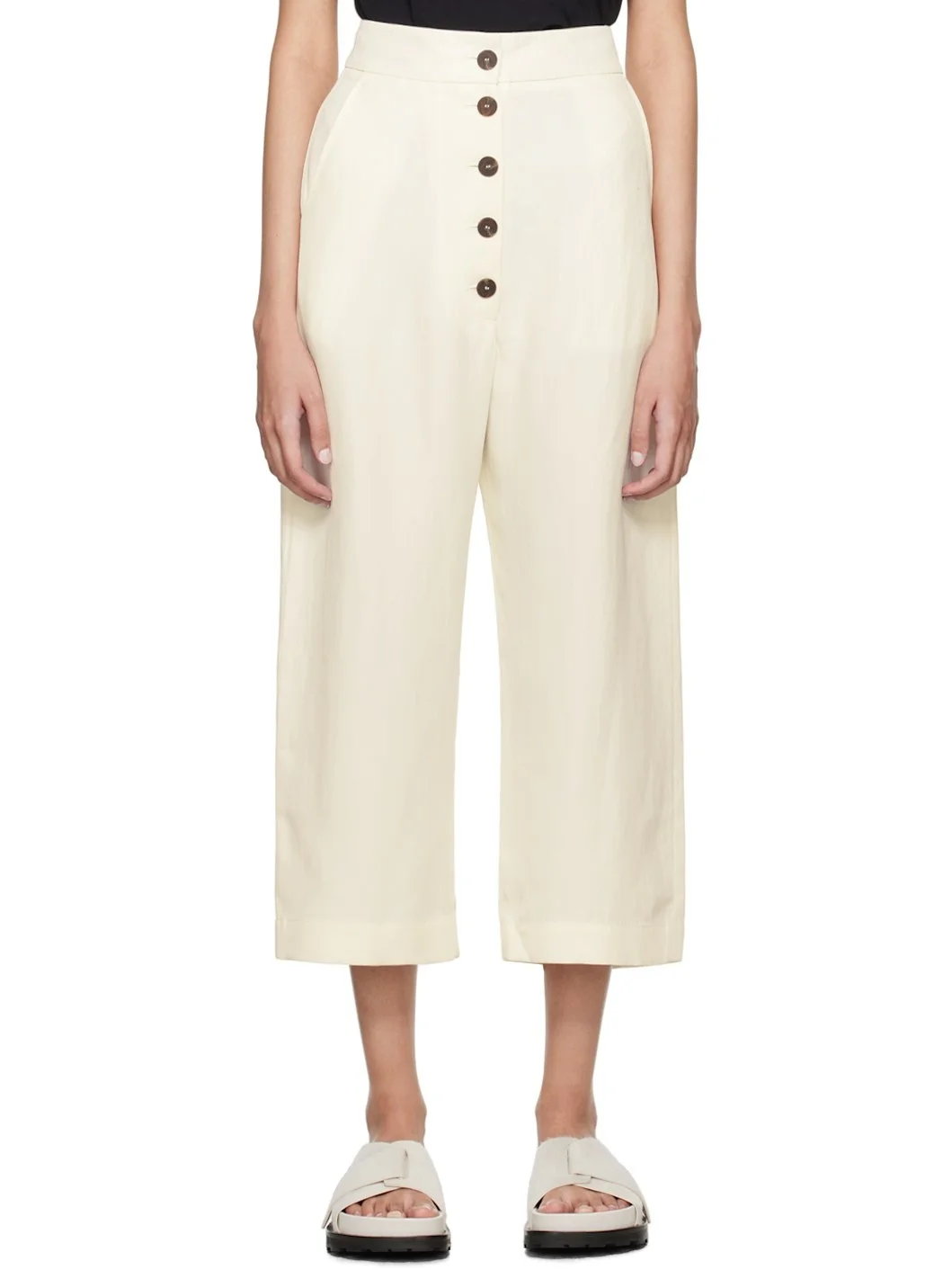 Viscose- and linen-blend twill trousers. · Four-pocket styling · Exposed button-fly Supplier color: Parchment 73% viscose, 27% linen. Made in Portugal 242608F087031