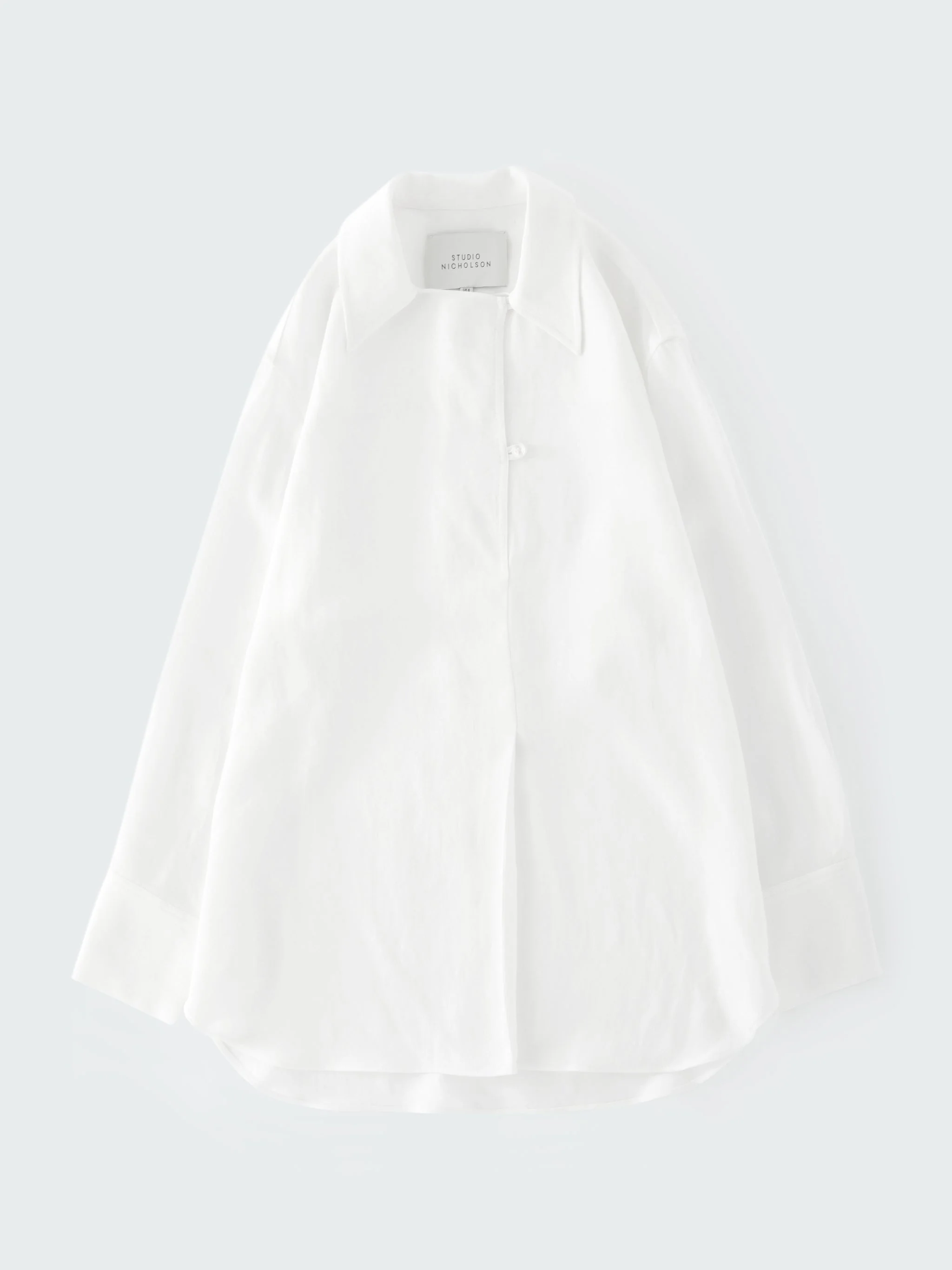 The Wilton shirt is made in a lightweight and breathable tropical wool, woven at the renowned British heritage mill Alfred Brown. With an oversized fit, it has dropped shoulders and features a vertical 'knife' pleat at the front, which can be worn closed or open at the neck. The shirt's elongated cuffs are pleated at the wrist and fasten with two mother-of-pearl buttons. DETAILS - Features mother-of-pearl button throughout - Wear it with the matching Dordoni PantLouise is 5'11"/ 177.8 cms and wears a UK8 CARE 100% Triacetate Wash at 30°C | Delicate Wash Made in Portugal