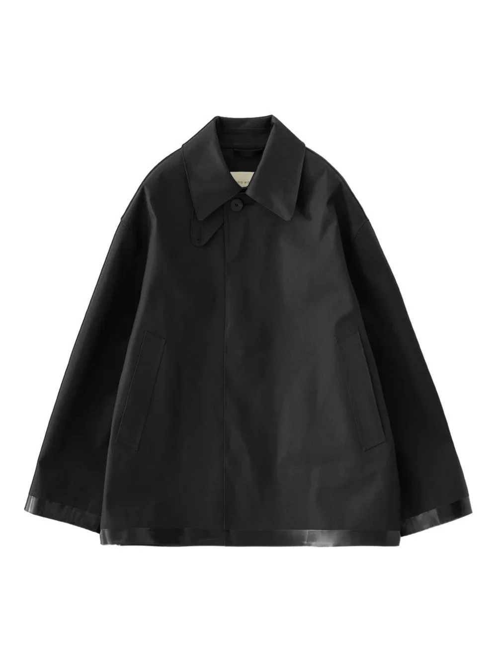 x Teviot buttoned coat Highlights - Black - Point collar - Front button fastening - Long sleeves - Welt pockets - Trim detail Made in United Kingdom Composition Cotton 100% Washing instructions Read Manufacturer Guidelines