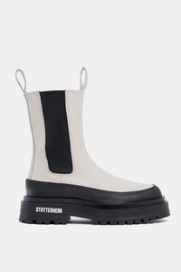 The Highwalker boots are chunky mid-calf boots perfect for the cold seasons. A true statement boot, it elevates any outfit and pairs excellently with a raincoat from STUTTERHEIM. Crafted in the finest quality leather, these comfortable boots will stand the test of time while the waterproof lug sole and rubber rim ensure protection from leakage and wet feet. Double pull tabs and elastic on the sides of the shaft make these stompers easy to pull on and off. GARMENT DETAILS - Waterproof chunky rubber lug sole - Waterproof rubber rim above sole - Mid-calf length - High-quality elastic on both sides of shaft - Double pull tabs at top of shaft - Raised STUTTERHEIM logo on rubber sole exterior - Small nylon logo label on shaft side - Designed in Stockholm - Made in Europe MATERIAL Upper: Vegetable-tanned Italian leather Outsole: Rubber Details: Polyester Read more about our fabrics