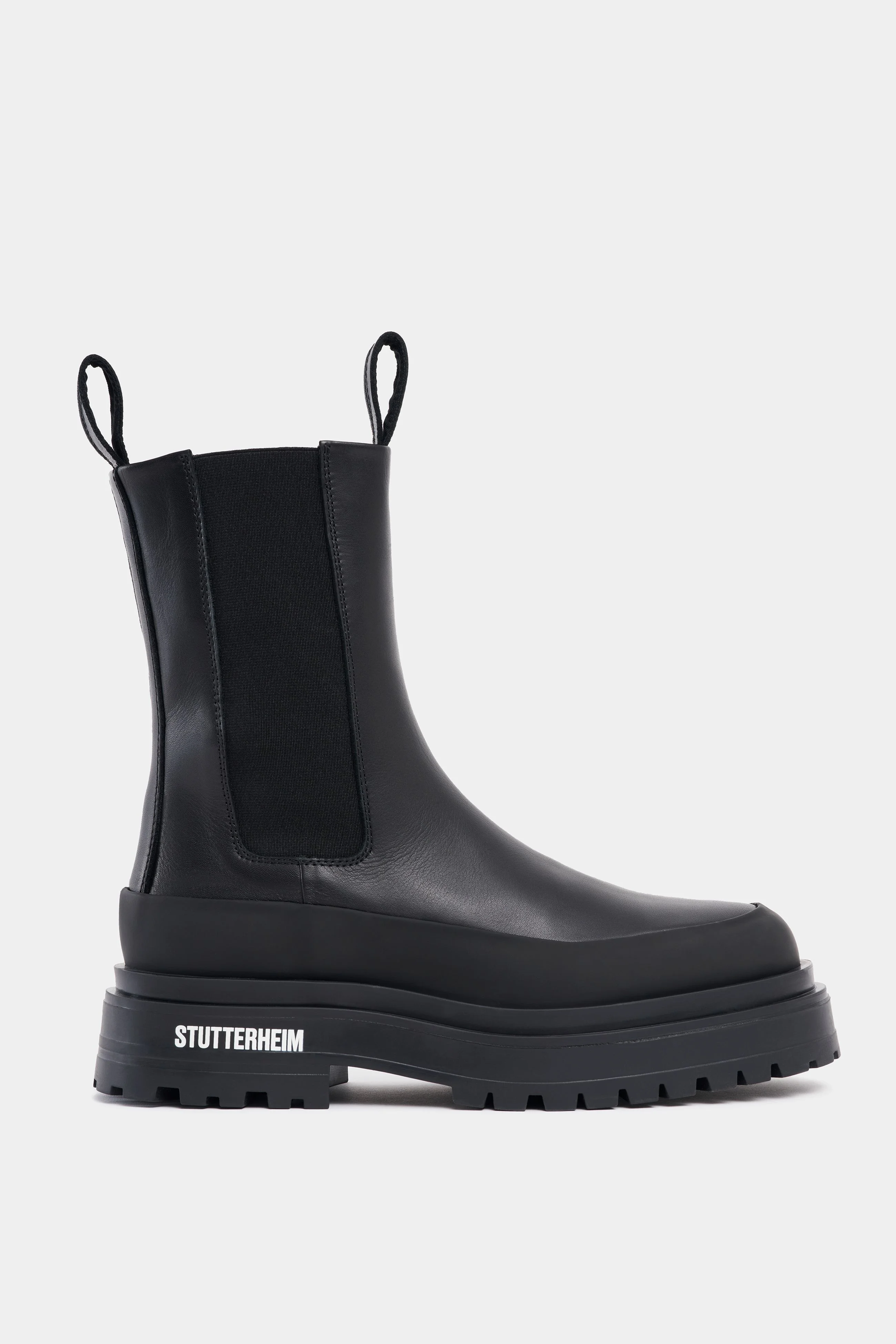 The Highwalker boots are chunky mid-calf boots perfect for the cold seasons. A true statement boot, it elevates any outfit and pairs excellently with a raincoat from STUTTERHEIM. Crafted in the finest quality leather, these comfortable boots will stand the test of time while the waterproof lug sole and rubber rim ensure protection from leakage and wet feet. Double pull tabs and elastic on the sides of the shaft make these stompers easy to pull on and off. GARMENT DETAILS - Waterproof chunky rubber lug sole - Waterproof rubber rim above sole - Mid-calf length - High-quality elastic on both sides of shaft - Double pull tabs at top of shaft - Contrast colour stitching - Raised STUTTERHEIM logo on rubber sole exterior - Small nylon logo label on shaft side - Designed in Stockholm - Made in Europe MATERIAL Upper: Vegetable-tanned Italian Nubuck leather Outsole: Rubber Details: Polyester Read more about our fabrics