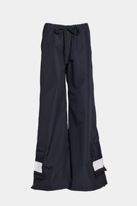 Karla Pocket are flared trousers for women in a light and breathable nylon fabric. These high-waist trousers have taped inside seams, making them resistant to wind and rain. The wide legs are decorated with colour-block detailing on the lower leg patch pockets, offering both functionality and a style statement. The model is 176 cm / 5′ 8″ Wearing → SIZE S GARMENT DETAILS - Breathable woven nylon fabric - Wind and water-resistant - High-waist with elasticated hem - Flared legs - Patch pocket with colour-block detail on lower leg - Taped inside seams - Open side pockets - Slanted zipped back pocket - Designed in Stockholm - Made in Europe MATERIAL Coating: 100% Polyester Membrane: 100% thermoplastic elastomer Read more about our fabrics
