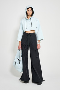 Lilla Tre is a super cropped hooded raincoat for women in sturdy waterproof fabric that is crafted with double-welded seams, making it impossible for any moisture to seep through. This short and stylish piece is perfect for layering and to pair with one of our high-waisted rain trousers for a completely waterproof yet fashionable look. The model is 176 cm / 5′ 8″ Wearing → SIZE S GARMENT DETAILS - Heavyweight 530-gram fabric - Completely waterproof - Wide bell sleeves - Seamless shoulder construction - Cropped body length - Drawstring hood with chunky cotton laces - Hidden press buttons - Open side pockets - Under-arm eyelets for ventilation - +20 000 mm water column pressure - Designed in Stockholm - Made in Europe MATERIAL Coating: 100% PVC rubberized coating Membrane: 52% Cotton, 48% polyester Read more about our fabrics
