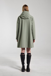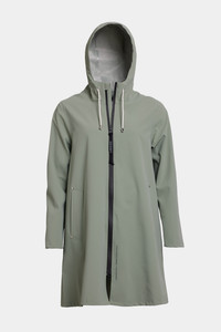 Mosebacke Lightweight Zip is an artisanally made a-line-shaped raincoat for women. The ultra-light waterproof fabric is tailored with double-welded seams and equipped with an aqua guard zipper, making it impossible for any moisture to seep through. Ease of movement and comfort is achieved with under-arm eyelets and a drawstring hood. The thin and packable fabric makes this garment perfect in unpredictable weather and for travelling. The model is 175 cm / 5′ 9” Wearing → SIZE S GARMENT DETAILS - Lightweight 230-gram fabric - Packable - Completely waterproof - A-line silhouette - Aqua guard zipper - Drawstring hood - Open welt pockets - Double welded seams - Under-arm eyelets for ventilation - +20 000 mm water column pressure - Designed in Stockholm - Made in Europe MATERIAL Coating: 100% PVC rubberized coating Membrane: 100% polyester Read more about our fabrics