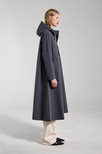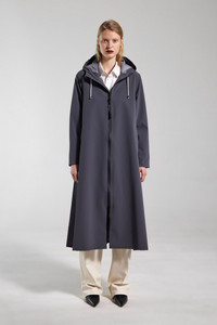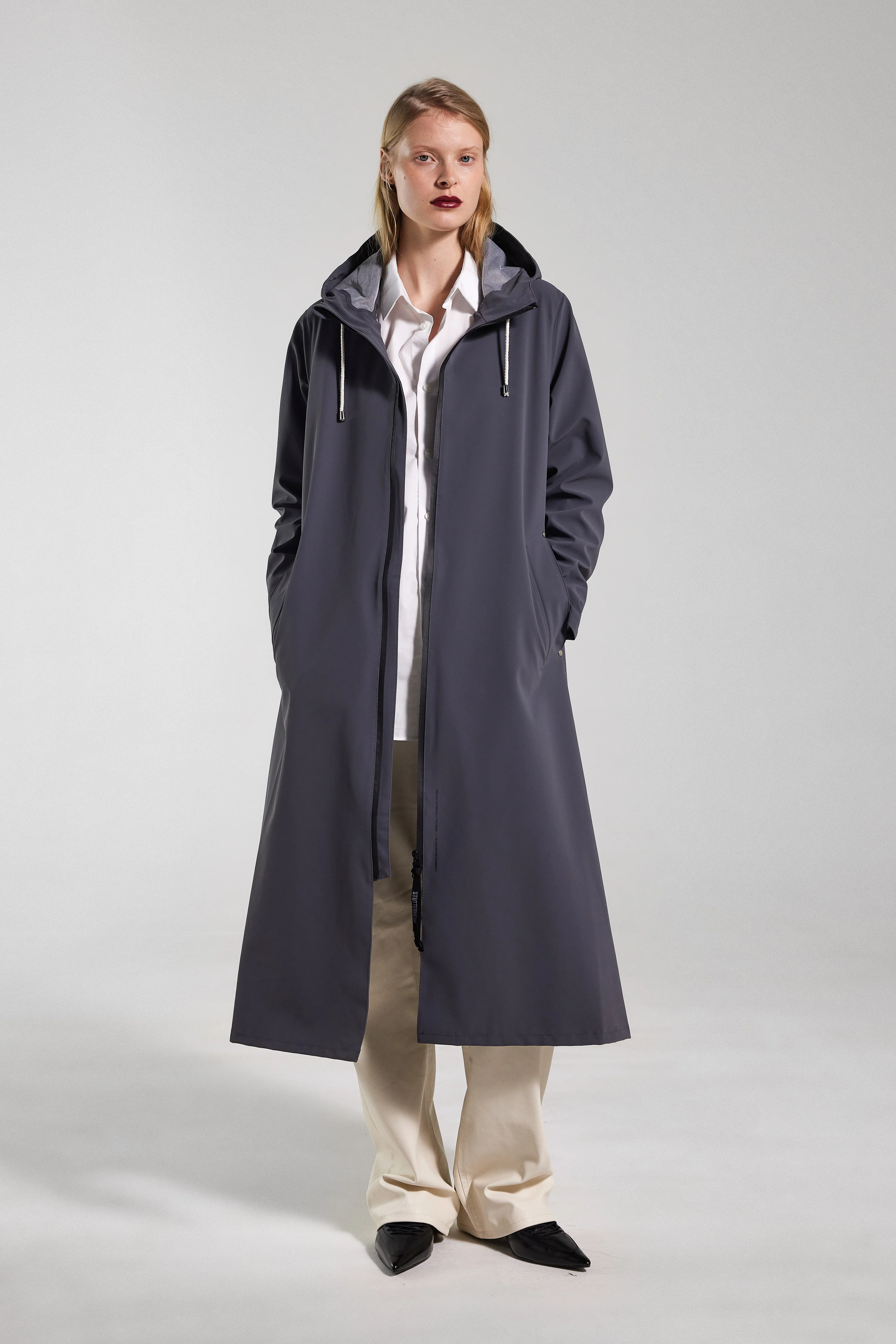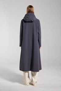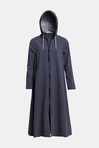 Mosebacke Long Matte Zip is an artisanally made knee-length and a-line-shaped raincoat for women. The ultra-light waterproof fabric with a matte finsh is tailored with double-welded seams and equipped with an aqua guard zipper, making it impossible for any moisture to seep through. Ease of movement and comfort is achieved with under-arm eyelets and a drawstring hood. The thin and packable fabric makes this garment perfect in unpredictable weather and for travelling. GARMENT DETAILS • Lightweight 230-gram fabric • Matte-textured finish • Packable • Completely waterproof • A-line silhouette • Knee-length • Aqua guard zipper • Drawstring hood • Open welt pockets • Double welded seams • Under-arm eyelets for ventilation • +20 000 mm water column pressure • Designed in Stockholm • Made in Europe MATERIAL Coating: 100% PVC rubberized coating Membrane: 100% polyester Read more about our fabrics