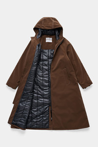Mosebacke Long Winter Matte is an artisanally made knee-length and a-line-shaped warm raincoat for women. The sturdy and hard-wearing waterproof shell fabric has a matte-textured finish and is tailored with double-welded seams, making it impossible for any moisture to seep through, while the padding provides warmth during cold and snowy weather. Ease of movement and comfort is achieved with knitted wristlets and a drawstring hood. The model is 170 cm / 5'6" Wearing → SIZE S GARMENT DETAILS - Midweight 280-gram shell fabric - Matte-textured finish - Completely waterproof - 150-gram technical insulator filling - Polyester lining - A-line silhouette - Knee-length - Aqua guard zipper - Nylon logo pull tab - Drawstring hood - Knitted wristlets - Fleece-lined welt side pockets - Fleece-lined inside welt pocket - Double welded seams - +20 000 mm water column pressure - Designed in Stockholm - Made in Europe MATERIAL Coating: 100% PVC rubberized coating Membrane: 100% polyester Lining: 100% polyester with poly filling Read more about our fabrics