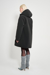 Mosebacke Winter Matte is an artisanally made a-line-shaped warm raincoat for women. The sturdy and hard-wearing waterproof shell fabric has a matte-textured finish and is tailored with double-welded seams, making it impossible for any moisture to seep through, while the padding provides warmth during cold and snowy weather. Ease of movement and comfort is achieved with knitted wristlets and a drawstring hood. The model is 175 cm / 5'9" Wearing → SIZE S GARMENT DETAILS - Midweight 280-gram shell fabric - Matte-textured finish - Completely waterproof - 150-gram technical insulator filling - Polyester lining - A-line silhouette - Aqua guard zipper - Nylon logo pull tab - Drawstring hood - Knitted wristlets - Fleece-lined welt side pockets - Fleece-lined inside welt pocket - Double welded seams - +20 000 mm water column pressure - Designed in Stockholm - Made in Europe MATERIAL Coating: 100% PVC rubberized coating Membrane: 100% polyester Lining: 100% polyester with poly filling Read more about our fabrics