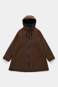 Mosebacke Winter Matte is an artisanally made a-line-shaped warm raincoat for women. The sturdy and hard-wearing waterproof shell fabric has a matte-textured finish and is tailored with double-welded seams, making it impossible for any moisture to seep through, while the padding provides warmth during cold and snowy weather. Ease of movement and comfort is achieved with knitted wristlets and a drawstring hood. The model is 170 cm / 5'6" Wearing → SIZE S GARMENT DETAILS - Midweight 280-gram shell fabric - Matte-textured finish - Completely waterproof - 150-gram technical insulator filling - Polyester lining - A-line silhouette - Aqua guard zipper - Nylon logo pull tab - Drawstring hood - Knitted wristlets - Fleece-lined welt side pockets - Fleece-lined inside welt pocket - Double welded seams - +20 000 mm water column pressure - Designed in Stockholm - Made in Europe MATERIAL Coating: 100% PVC rubberized coating Membrane: 100% polyester Lining: 100% polyester with poly filling Read more about our fabrics