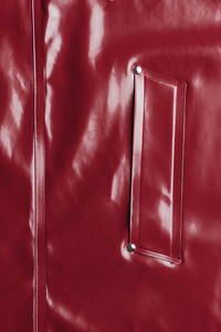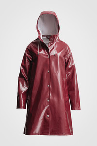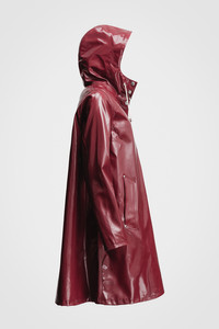 Mosebacke Opal is an artisanally made a-line-shaped raincoat for women. The shiny yet sturdy waterproof fabric is tailored with double-welded seams, making it impossible for any moisture to seep through. Ease of movement and comfort is achieved with under-arm eyelets and a drawstring hood. GARMENT DETAILS • Heavy-weight 530-gram fabric • Shiny high-gloss fabric finish • Completely waterproof • A-line silhouette • Snap metal button closures • Drawstring hood • Open welt pockets • Double welded seams • Under-arm eyelets for ventilation • +20 000 mm water column pressure • Designed in Stockholm • Made in Europe MATERIAL Coating: 100% PVC rubberized coating Membrane: 52% cotton, 48% polyester Read more about our fabrics