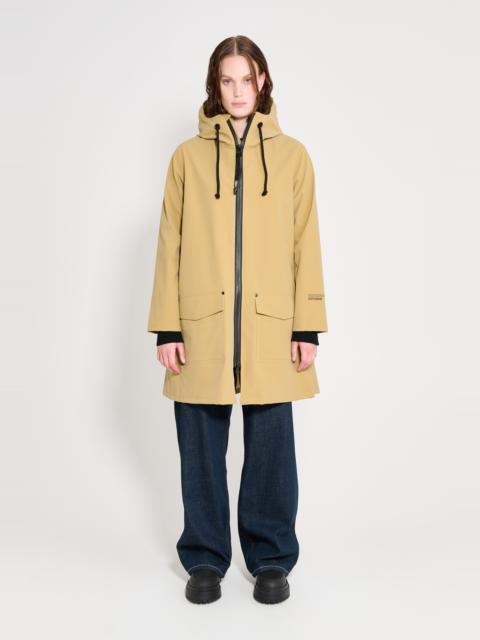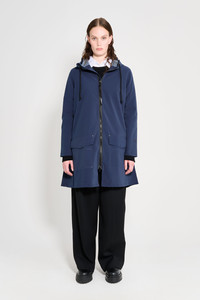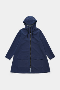 Meet Mosebacke 2.0. Based on our classic style Mosebacke, this version of the A-lined raincoat for women boasts of all the features that make the original an essential wardrobe staple, while incorporating new and improved features based on customer feedback. Expertly made in light and airy waterproof fabric and tailored with triple-welded seams to keep any moisture from seeping through, the new features include patch pockets with flaps to keep your valuables dry and safe as well as a capped hood for clear vision and perfect hair, even in less than perfect weather. The model is 176 cm / 5′ 8″ Wearing → SIZE S GARMENT DETAILS - Lightweight 280-gram fabric - Packable - Completely waterproof - A-line silhouette - Heavy acrylic zipper - Capped drawstring hood - Chunky cotton drawstrings - Patch pockets with flaps - Triple-welded seams - Under-arm eyelets for ventilation - +20 000 mm water column pressure - Designed in Stockholm - Made in Europe MATERIAL Coating: 100% PVC rubberized coating Membrane: 100% polyester Read more about our fabrics