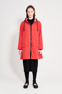 Meet Mosebacke 2.0. Based on our classic style Mosebacke, this version of the A-lined raincoat for women boasts of all the features that make the original an essential wardrobe staple, while incorporating new and improved features based on customer feedback. Expertly made in light and airy waterproof fabric and tailored with triple-welded seams to keep any moisture from seeping through, the new features include patch pockets with flaps to keep your valuables dry and safe as well as a capped hood for clear vision and perfect hair, even in less than perfect weather. The model is 176 cm / 5′ 8″ Wearing → SIZE S GARMENT DETAILS - Lightweight 280-gram fabric - Packable - Completely waterproof - A-line silhouette - Heavy acrylic zipper - Capped drawstring hood - Chunky cotton drawstrings - Patch pockets with flaps - Triple-welded seams - Under-arm eyelets for ventilation - +20 000 mm water column pressure - Designed in Stockholm - Made in Europe MATERIAL Coating: 100% PVC rubberized coating Membrane: 100% polyester Read more about our fabrics