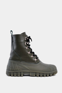 Patrol Boots are modern duck boots made for urban usage. Stylish as well as practical — a perfect trans-seasonal shoe suitable in spring and autumn, as well as winter when paired with warm socks or an added thermo sole. Constructed with a leather upper which has been treated to be water-repellent and a galosh-style duck sole, you can rest assured that your feet will be kept dry. The rubber lug sole ensures a firm grip on slippery ground and the padded ankle-length shaft adds warmth and comfort on days you need it the most. GARMENT DETAILS - Waterproof rubber lug sole - Water-repellent treated leather upper - Galosh-style duck sole - Rounded shell toe - Ankle-length - Front lace-up fastening - Small logo patch on shaft - Padded ankle - Pull-tab at back - Unisex style - Designed in Stockholm - Made in Europe MATERIAL Upper: Vegetable-tanned Italian leather Outsole: Rubber Laces and details: Polyester and metal Read more about our fabrics