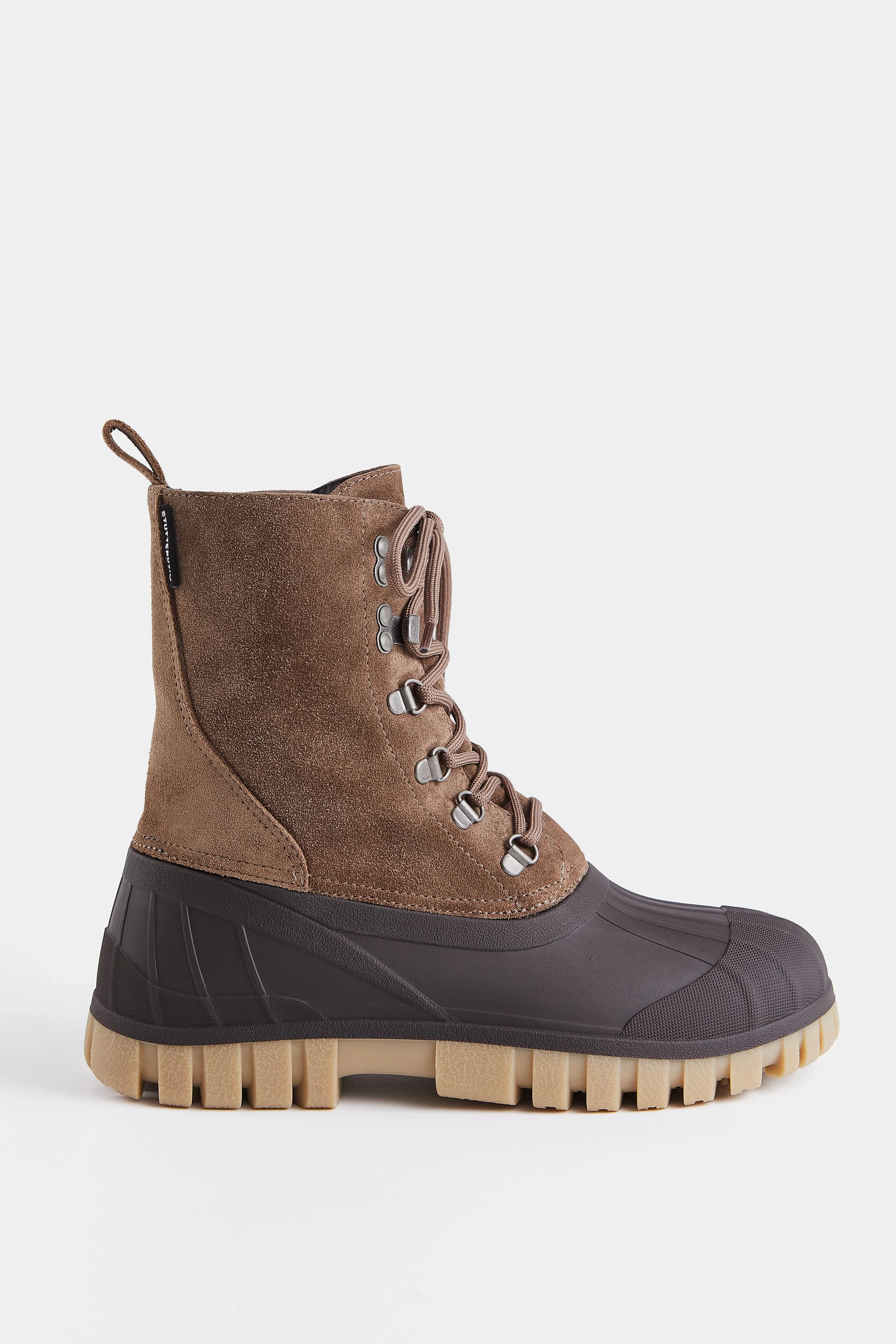 Patrol Boots are modern duck boots made for urban usage. Stylish as well as practical — a perfect trans-seasonal shoe suitable in spring and autumn, as well as winter when paired with warm socks or an added thermo sole. Constructed with a suede upper which has been treated to be water-repellent and a galosh-style duck sole, you can rest assured that your feet will be kept dry. The rubber lug sole ensures a firm grip on slippery ground and the padded ankle-length shaft adds warmth and comfort on days you need it the most. GARMENT DETAILS - Waterproof rubber lug sole - Water-repellent treated suede upper - Galosh-style duck sole - Rounded shell toe - Ankle-length - Front lace-up fastening - Small logo patch on shaft - Padded ankle - Pull-tab at back - Unisex style - Designed in Stockholm - Made in Europe MATERIAL Upper: Vegetable-tanned Italian suede Outsole: Rubber Laces and details: Polyester and metal Read more about our fabrics