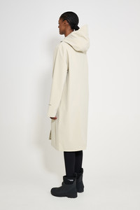 Stockholm Long Patch is a straight-fit knee-length raincoat in sturdy and hard-wearing waterproof fabric. Expertly made, it’s tailored with triple-welded seams for complete protection against the rain. The capped drawstring hood and under-arm eyelets add ease of movement and comfort in uncomfortable weather, while patch pockets with flaps keep valuables safe and dry. GARMENT DETAILS - Heavy midweight 380-gram fabric - Completely waterproof - Straight unisex fit - Knee-length - Acrylic two-way zipper - Capped drawstring hood - Chunky cotton drawstrings - Patch pockets with flaps - Triple-welded seams - Under-arm eyelets for ventilation - +20 000 mm water column pressure - Designed in Stockholm - Made in Europe MATERIAL Coating: 100% PVC rubberized coating Membrane: 52% Cotton, 48% polyester Read more about our fabrics