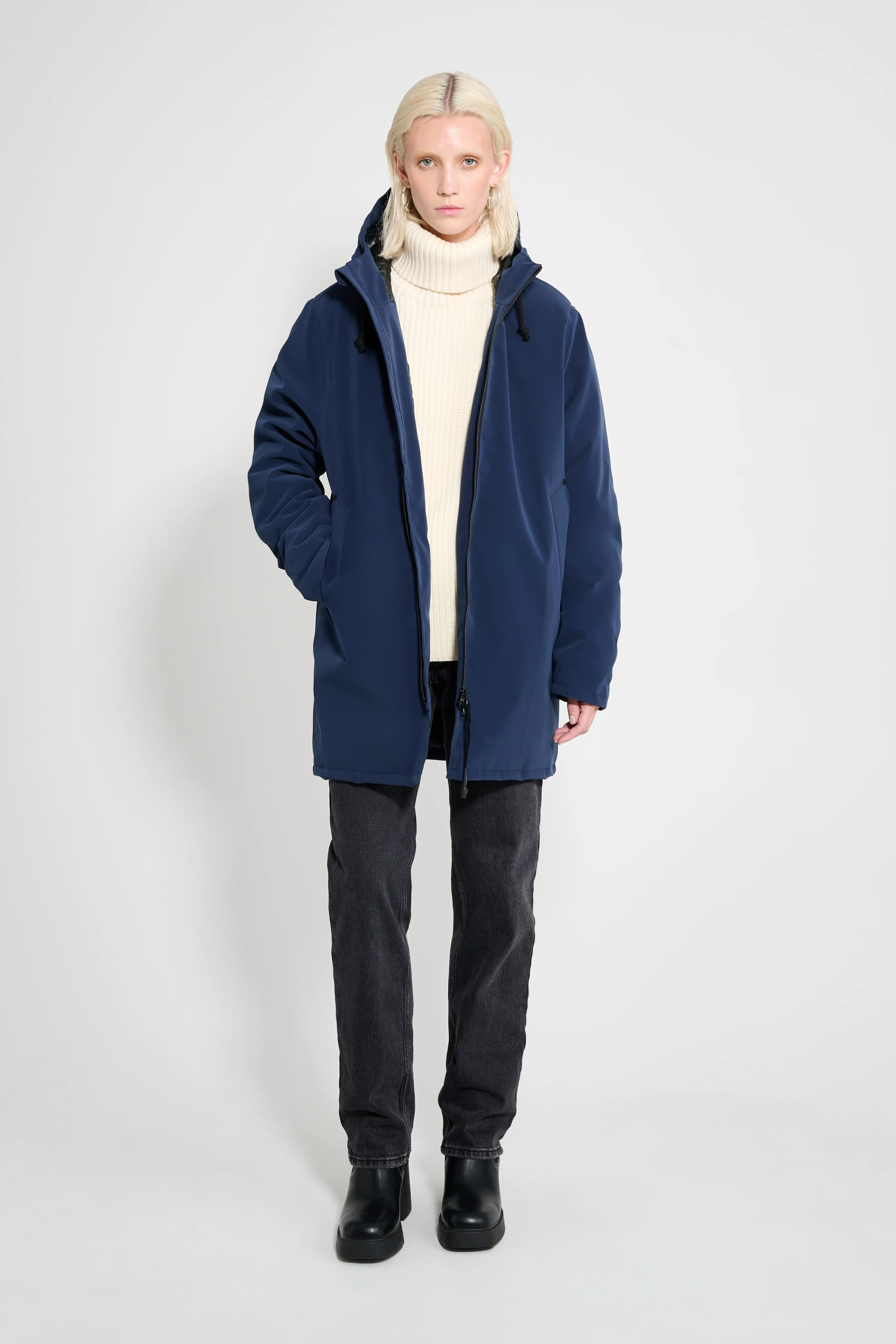 Stockholm Winter Matte is a straight-fit warm raincoat in sturdy and hard-wearing waterproof fabric with a matte-textured finish. It’s insulated with padding for warmth during the winter season. Expertly made, it’s tailored with double-welded seams for complete protection against rain and snow. The drawstring hood and knitted wristlets add ease of movement and comfort in uncomfortable weather. The model is 175 cm / 5'9" Wearing → SIZE XS GARMENT DETAILS - Midweight 280-gram shell fabric - Matte-textured finish - Completely waterproof - 150-gram technical insulator filling - Polyester lining - Straight unisex fit - Aqua guard zipper - Nylon logo pull tab - Drawstring hood - Knitted wristlets - Fleece-lined welt side pockets - Fleece-lined inside welt pocket - Double welded seams - +20 000 mm water column pressure - Designed in Stockholm - Made in Europe MATERIAL Coating: 100% PVC rubberized coating Membrane: 100% polyester Lining: 100% polyester with poly filling Read more about our fabrics