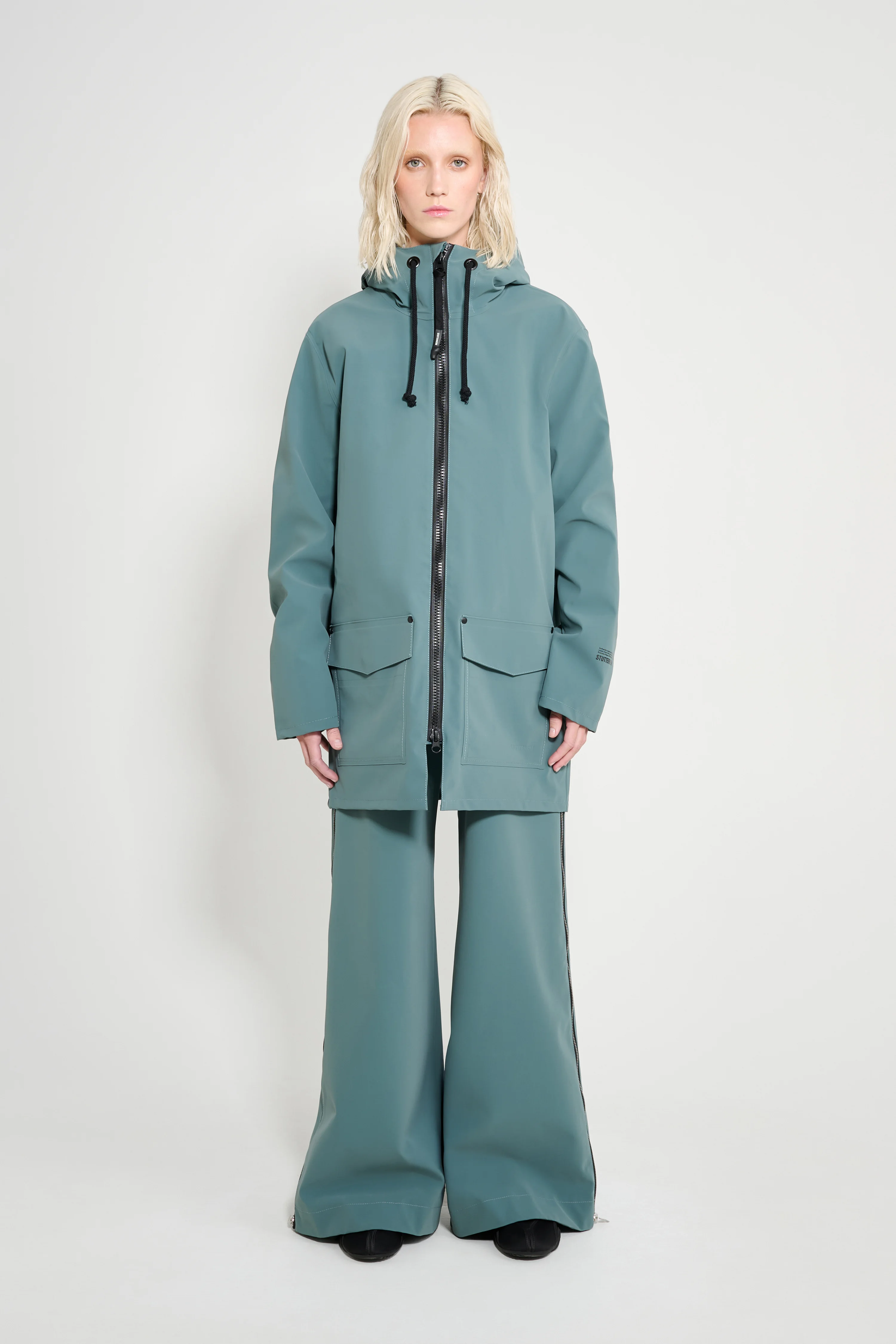 Say hello to Stockholm 2.0. Based on our classic style Stockholm, this version of the straight-fit, unisex raincoat boasts of all the features that make the original an essential wardrobe staple, while incorporating new and improved features based on customer feedback. Expertly made in light and airy waterproof fabric and tailored with triple-welded seams for complete rain protection, the new features include patch pockets with flaps to keep your carry-ons dry and safe and a capped hood for clear vision and comfort in uncomfortable weather. The model is 175 cm / 5'9" Wearing → SIZE S GARMENT DETAILS • Lightweight 280-gram fabric • Packable • Completely waterproof • Straight unisex fit • Heavy acrylic zipper • Capped drawstring hood • Chunky cotton drawstrings • Patch pockets with flaps • Triple-welded seams • Under-arm eyelets for ventilation • +20 000 mm water column pressure • Designed in Stockholm • Made in Europe MATERIAL Coating: 100% PVC rubberized coating Membrane: 100% polyester Read more about our fabrics