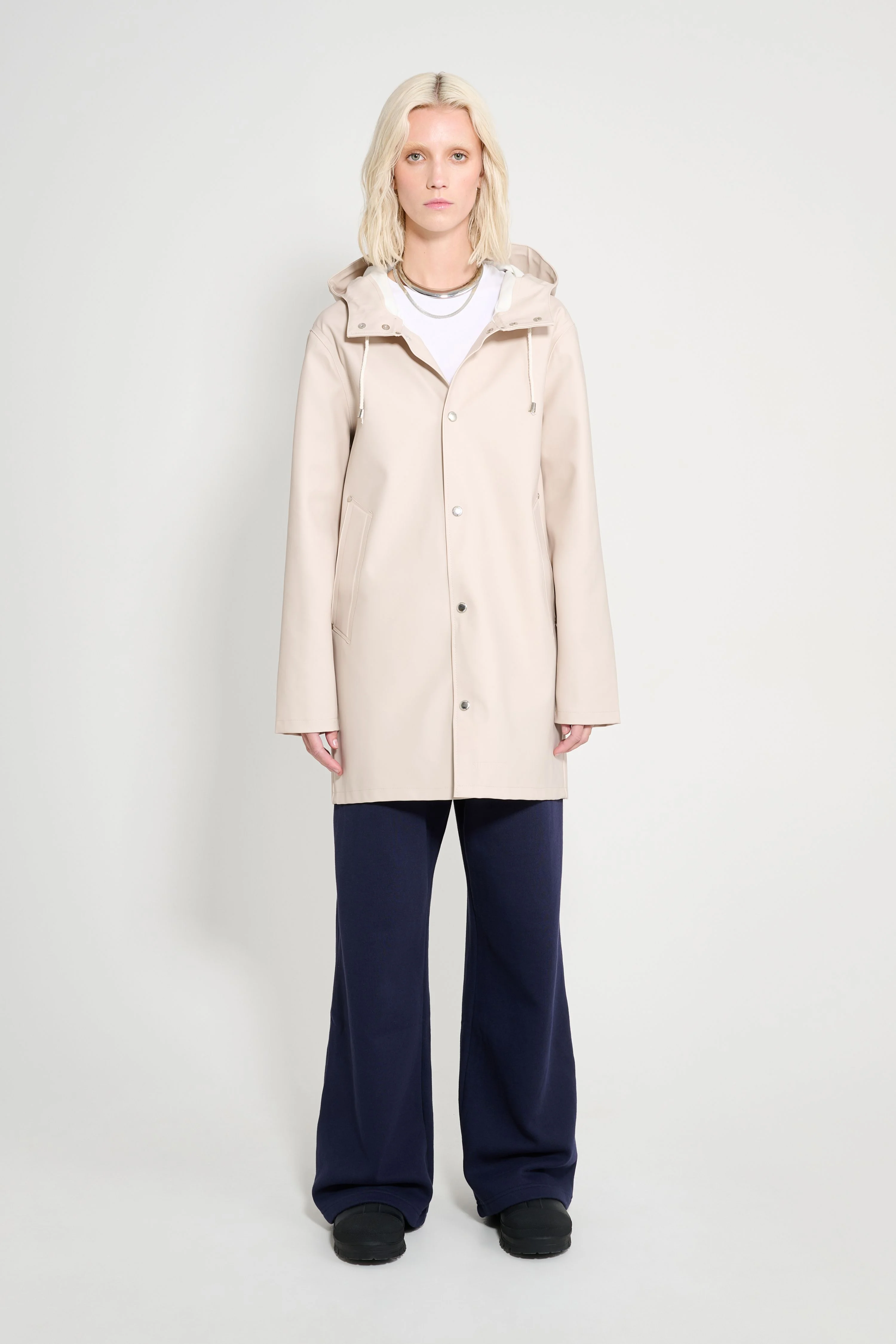 Stockholm, our home and your essential wardrobe staple is a straight-fit raincoat in sturdy and hard-wearing waterproof fabric. Expertly made, it’s tailored with double-welded seams for complete protection against the rain. The drawstring hood and under-arm eyelets add ease of movement and comfort in uncomfortable weather. The model is 179 cm / 5′ 10″ Wearing → SIZE XS GARMENT DETAILS - Heavy-weight 530-gram fabric weight - Completely waterproof - Straight unisex fit - Snap metal button closures - Drawstring hood - Open welt pockets - Double welded seams - Under-arm eyelets for ventilation - +20 000 mm water column pressure - Designed in Stockholm - Made in Europe MATERIAL Coating: 100% PVC rubberized coating Membrane: 52% cotton, 48% polyester Read more about our fabrics
