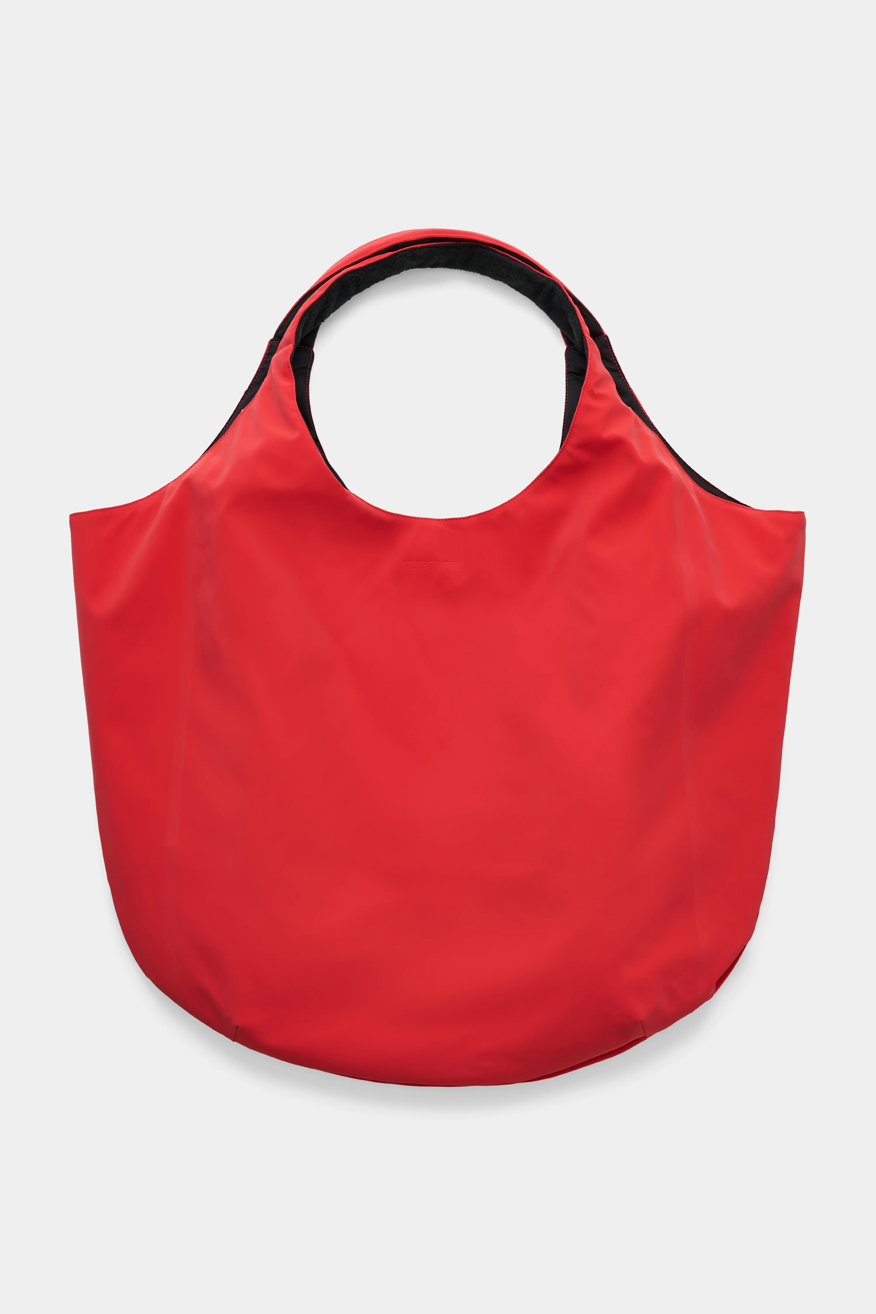 Svea Puffer Bag is a generously sized padded carry-all, suitable for everything from your weekly food shop to laundry runs, as a gym bag or even to pack for a weekend trip. Made in sturdy, hard-wearing waterproof fabric and constructed with double-welded seams, no moisture can get through to your belongings and the padding adds a layer of cushioned protection. The fleece-lined handles fit comfortably over the shoulder or in the hand while the inside zipped pocket secures small items or valuables. GARMENT DETAILS • Heavyweight 530-gram fabric • 150-gram technical insulator filling • Black cotton lining • Fleece-lined comfort grip handle • Double welded seams • Inside zip pocket • Inside phone pocket • Snap metal button closure • Debossed logo on front • Handles fit over shoulder or in hand • Height: 49 cm / 19" • Width: 62 cm / 24" • Designed in Stockholm • Made in Europe MATERIAL 100% PVC rubberized coating Membrane: 52% cotton, 48% polyester Lining: 70% cotton, 30% polyester Padding: 100% polyester with poly filling Read more about our fabrics