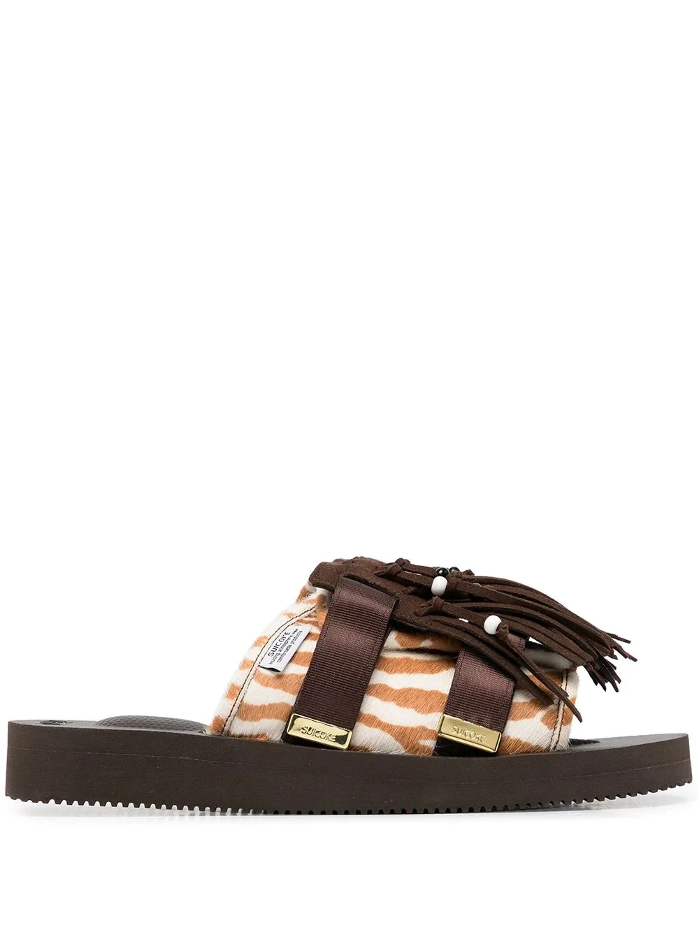 HOTO printed calf-hair sandals calf hair/leather zebra print removable tassel detailing gold-tone hardware open toe front touch-strap fastening moulded footbed rubber sole slip-on style Imported Composition Sole: Rubber 100% Outer: Calf Hair 100% Inner: Leather 100% SIZE & FIT Measurement HEEL 1.22 in(3.1 cm) Inside Sole 0.86 in(2.2 cm)