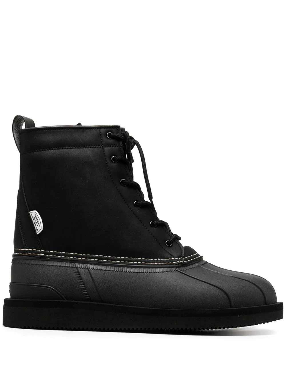 ALAL lace-up ankle boots black contrast stitching pull-tab at the heel round toe ankle-length front lace-up fastening flat sole waterproof Imported Composition Leather 100% SIZE & FIT FittingInformation This piece is unisex. Please take care when selecting your size This piece fits small - you might like to get one size up Measurement HEIGHT 7.08 in(18 cm) HEEL 1.18 in(3 cm) Sole height 0.78 in(2 cm)