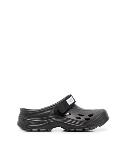 MOK touch-strap mules blue cut-out detailing logo patch to the side touch-strap fastening almond toe moulded footbed EVA midsole low sculpted heel rubber sole When buying this unisex item, keep in mind that it is graded in standard men's sizing. Made in Italy Composition Sole: Rubber 100% Lining: Rubber 100% Outer: Rubber 100% SIZE & FIT Measurement Sole height 0.59 in(1.5 cm) HEEL 1.18 in(3 cm)