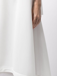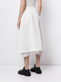 jersey knit flared skirt white concealed side zip fastening flared asymmetric hem raw edge Imported Composition Polyester 100% Lining: Cupro 100% SIZE & FIT Model measurements Height 5 ft 11 in(1.8 m) Bust/Chest 31.49 in(80 cm) Hips 35.03 in(89 cm) Waist 23.62 in(60 cm) FittingInformation This piece fits true to size. We recommend you get your regular size Designed for a loose fit with a close fit at the waist Made with a mid-weight non-stretch fabric Washing instructions Dry Clean Only