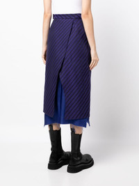 raw-hem striped skirt sulvam's playfully deconstructed nature is encapsulated in this SS23 skirt. Purple and black-hued diagonal stripes embolden the straight silhouette, while an artfully layered hem with raw-cut edges lends the garment its distinct DNA. Highlights - Purple - Diagonal stripe print - Pleat detailing - Layered effect - High waist - Raw-cut hem - Mid-length Imported Composition Body: Polyester 56%, Polycotton 44% Lining: Cupro 100% SIZE & FIT Model measurements Height 5 ft 9 in(1.76 m) Bust/Chest 31.1 in(79 cm) Hips 35.03 in(89 cm) Waist 24.4 in(62 cm) FittingInformation This mini-length skirt is intended to be worn high on the waist Made from a midweight non-stretch fabric This piece fits true to size – take your usual size