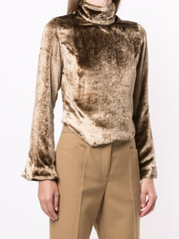 velvet cropped sweatshirt Highlights - Beige - Roll neck - Rear zip fastening - Long sleeves - Asymmetric hem Imported Composition Rayon 85%, Polyester 15% SIZE & FIT Model measurements Height 5 ft 9 in(1.76 m) Bust/Chest 29.13 in(74 cm) Hips 33.07 in(84 cm) Waist 22.83 in(58 cm) FittingInformation This piece fits true to size. We recommend you get your regular size Cut for a loose fit Made with a mid-weight non-stretch fabric
