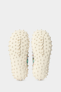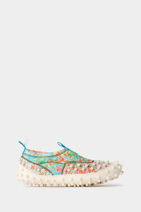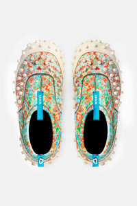1000chiodi shoes are back with a renewed look. The iconic studded sole now embraces the elastic 3d mesh upper for a comfort feeling. The studs, present also on the leather part are the main characteristic of these shoes, and give the name to it. Multicolors slip on technical-inspired shoes with white sole and white studs on outersole and sides. 50%PA 30%LE 20%TPU - 100%TPU Made in Italy Materials from Italy