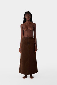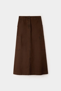 Long flared skirt with side double cargo pockets in brown garment washed cotton twill featuring back split, belt loops, two-styling pockets with double back pockets and front flap with zip and rubbered button. 100% CO Materials from Italy Made in Italy Fatima is wearing a size S. Model measures: Height: 172cm Chest: 80cm Waist: 60cm Hips: 92cm Shoe: 39 Fatima is wearing a size S. Model measures: Height: 172cm Chest: 80cm Waist: 60cm Hips: 92cm Shoe: 39