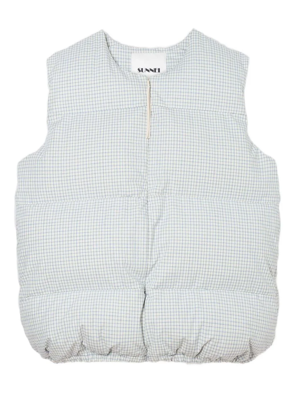 checked puffy gilet Highlights - Off white - Checked pattern - Zip fastening - Sleeveless - Padded Imported Composition Recycled Polyester 100%, Cotton 95%, Linen/Flax 5% Washing instructions Read Manufacturer Guidelines