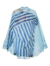 Maxi over shirt in azure silk organza with dyed 'CUORE DI PIETRA' print. 100% SE Materials from Italy Made in Italy Chloe is wearing S. Model measures: Height: 176 cm Chest: 78 Waist: 60 Hips: 87 Shoe: 40 Chloe is wearing S. Model measures: Height: 176 cm Chest: 78 Waist: 60 Hips: 87 Shoe: 40