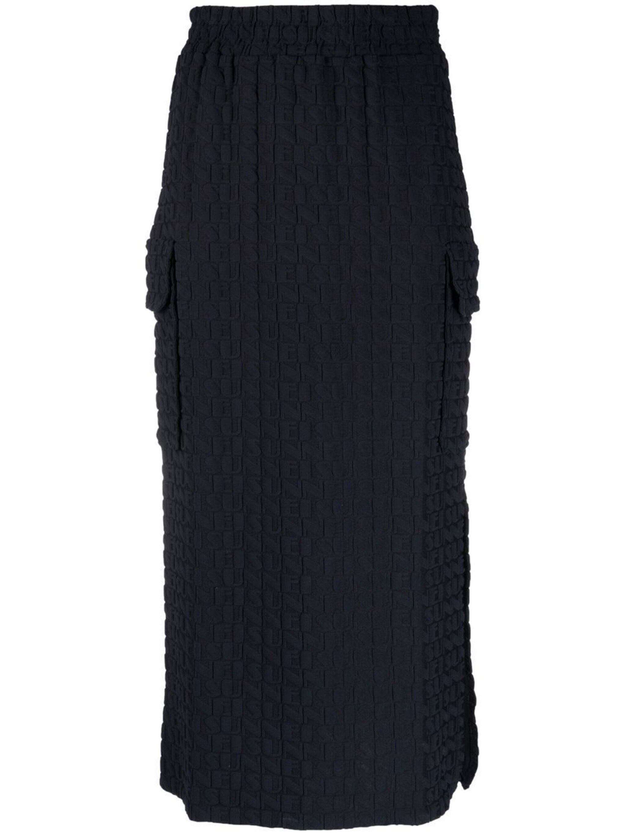 embossed logo-print midi skirt from SUNNEI featuring navy blue, all-over embossed logo print, high-waisted, elasticated waistband, two side cargo pockets, side slit, straight hem and calf-length. Size & Fit Model Measurements: Height: 1.78 m Bust/Chest: 80.0 cm Hips: 92.0 cm Waist: 65.0 cm Model wears size S Fabric and Care Designer Style ID: CRTWWSKR027PLY015 Designer Colour: 492 DARK NAVY Composition: Polyamide 95%, Spandex/elastane 5% Washing instructions: Machine Wash Made in Portugal