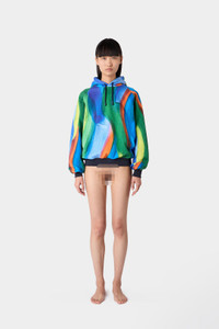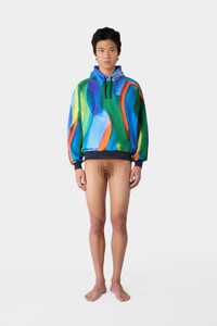 Longsleeve hoodie in multicolor organic cotton featuring 'PENNELLATA' allover print. Coulisse with two rubberized cord ends and rib on hem and wrist. 100% Organic CO Materials from Portugal Made in Portugal Gao Qi is wearing a size S. Model measures: Height: 179cm Chest: 77cm Waist: 59cm Hips: 88cm Shoe: 39 Gao Qi is wearing a size S. Model measures: Height: 179cm Chest: 77cm Waist: 59cm Hips: 88cm Shoe: 39