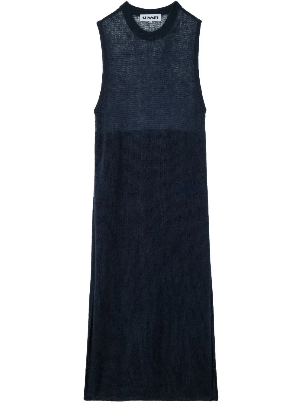 knitted long vest Highlights - Navy blue - Ribbed band collar - Sleeveless - Long length - When buying this unisex item, keep in mind that it is graded in standard men's sizing. Made in Italy Composition Polyamide 40%, Wool 30%, Mohair 30%