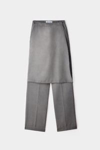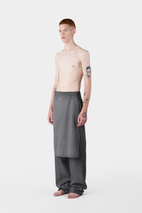 Straight-leg relaxed fit pants with front panel skirt in grey garment dyed wool. Snap button closure on the front side left and double back welt pockets. 100% WO Materials from Italy Made in Italy Isabella is wearing a size S. Model measures: Height: 180cm Chest: 82cm Waist: 63cm Hips: 89cm Shoe: 40 Coretin is wearing a size M. Model measures: Height: 186cm Chest: 87cm Waist: 72cm Hips: 92cm Shoe: 44 Coretin is wearing a size M. Model measures: Height: 186cm Chest: 87cm Waist: 72cm Hips: 92cm Shoe: 44