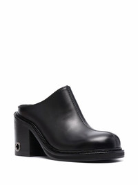 95mm leather mules Highlights - Black - Leather - Slip-on style - Round toe - Branded leather insole - High block heel Made in Italy Composition Sole: Leather 100% Lining: Leather 100% Outer: Leather 100% SIZE & FIT Measurement HEEL 3.74 in(9.5 cm) Sole height 0.98 in(2.5 cm)