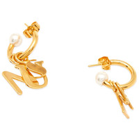 Fun is in its DNA, Sunnei, upgrades this pair of hoop earrings with its usual playful approach, harnessing its Italian design with an effortlessly modern aesthetic. Crafted in a yellow gold tone finish, logo letters spell out SUN, hanging in charms and finished with pearl detailing. - Gold-Toned Metal & Pearl - Post Back Fastening