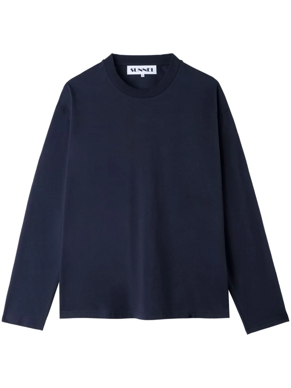 logo-embroidered T-shirt Highlights - Navy blue - Organic cotton - Lightweight jersey - Embroidered logo at the sleeve - Round neck - Long sleeves - Straight hem - When buying this unisex item, keep in mind that it is graded in standard men's sizing. Imported Composition Organic Cotton 100%